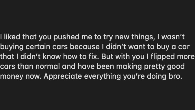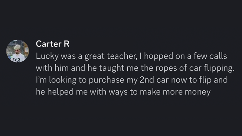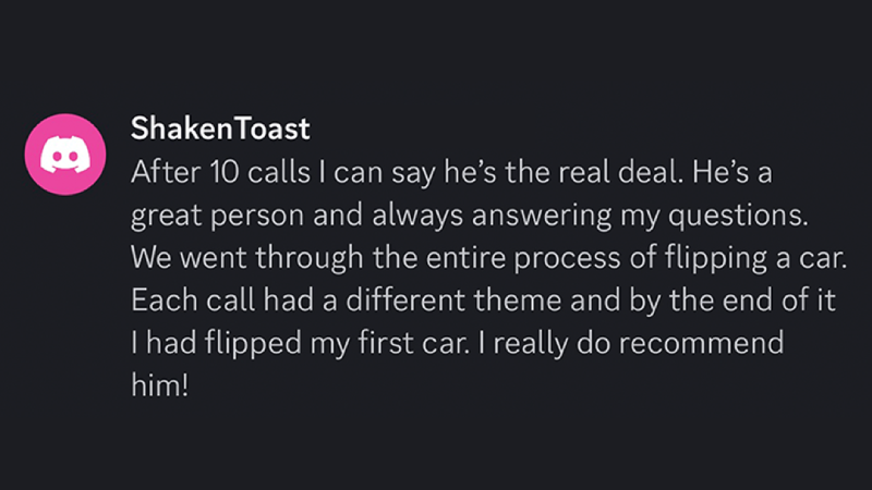 He joined to make flipping cars a side hustle and by the end of the month he flipped two cars.