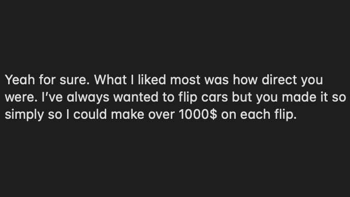 This time my business success was different, I built a system that allowed me to flip cars for more money in less time.