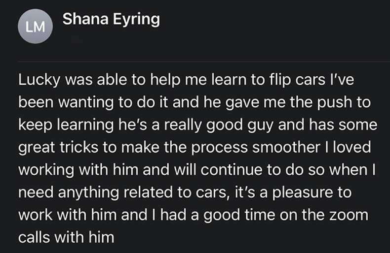 "Thanks for the help, great that you taught me to flip cars in a better way so I could make a lot more"